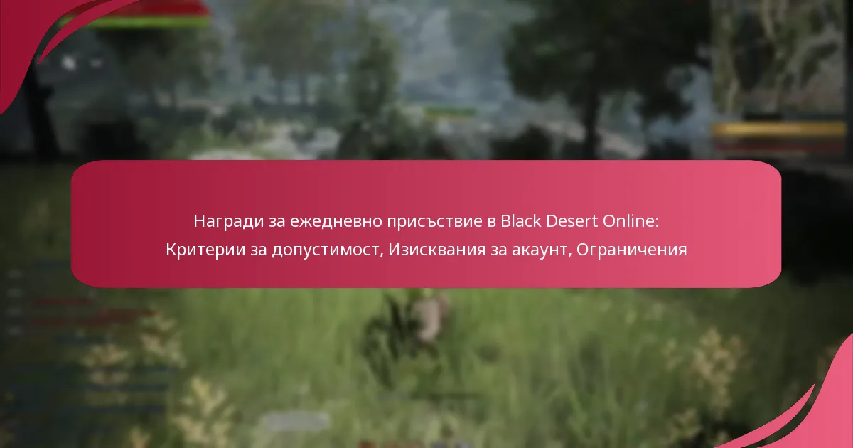 В Black Desert Online играчите могат да получават ежедневни награди за присъствие, като изпълняват специфични условия за допустимост, включително ниво на персонажа, възраст на акаунта и географско местоположение. Освен това, изискванията за акаунта, като статус на верификация и регионална допустимост, играят решаваща роля за максимизиране на тези награди. Също така е важно да бъдете наясно с ограниченията, свързани с получаването на тези награди, за да осигурите гладко изживяване.