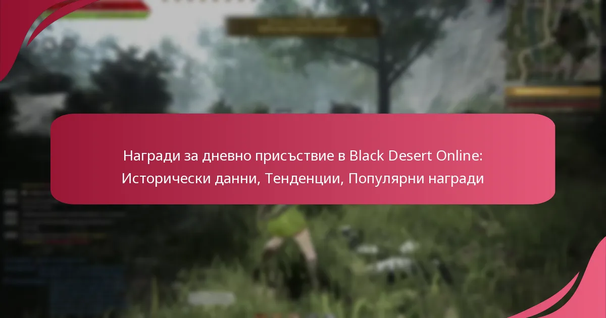 Black Desert Online има богата история на наградите за присъствие, които играчите могат да спечелят, като влизат ежедневно. Тези данни включват различни награди, предлагани през годините, показвайки тенденции и промени, които отразяват ангажираността и предпочитанията на играчите.
